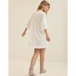 Real Good Everyday yarnRolled necklineRibbed trim on cuffs and hemPointelle deets and split cuffs on the sleevesStripedAccessibility deets: over-the-head access