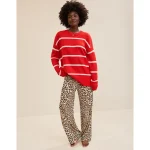 Real Good Everyday yarnRolled necklineRibbed trim on cuffs and hemPointelle deets and split cuffs on the sleevesStripedAccessibility deets: over-the-head access