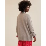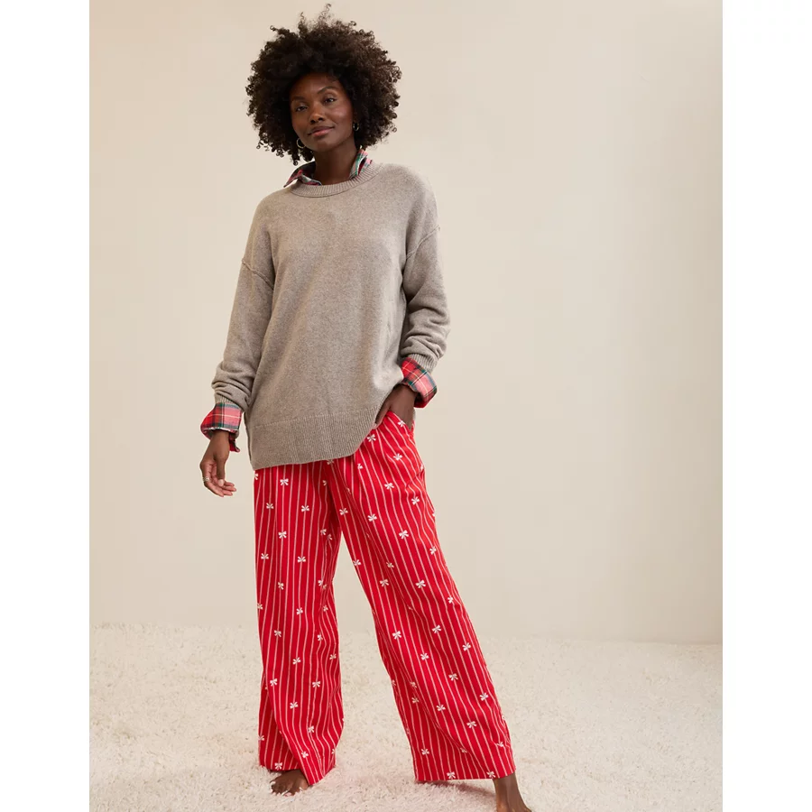 Real Good Everyday yarnRolled necklineRibbed trim on cuffs and hemPointelle deets and split cuffs on the sleevesStripedAccessibility deets: over-the-head access