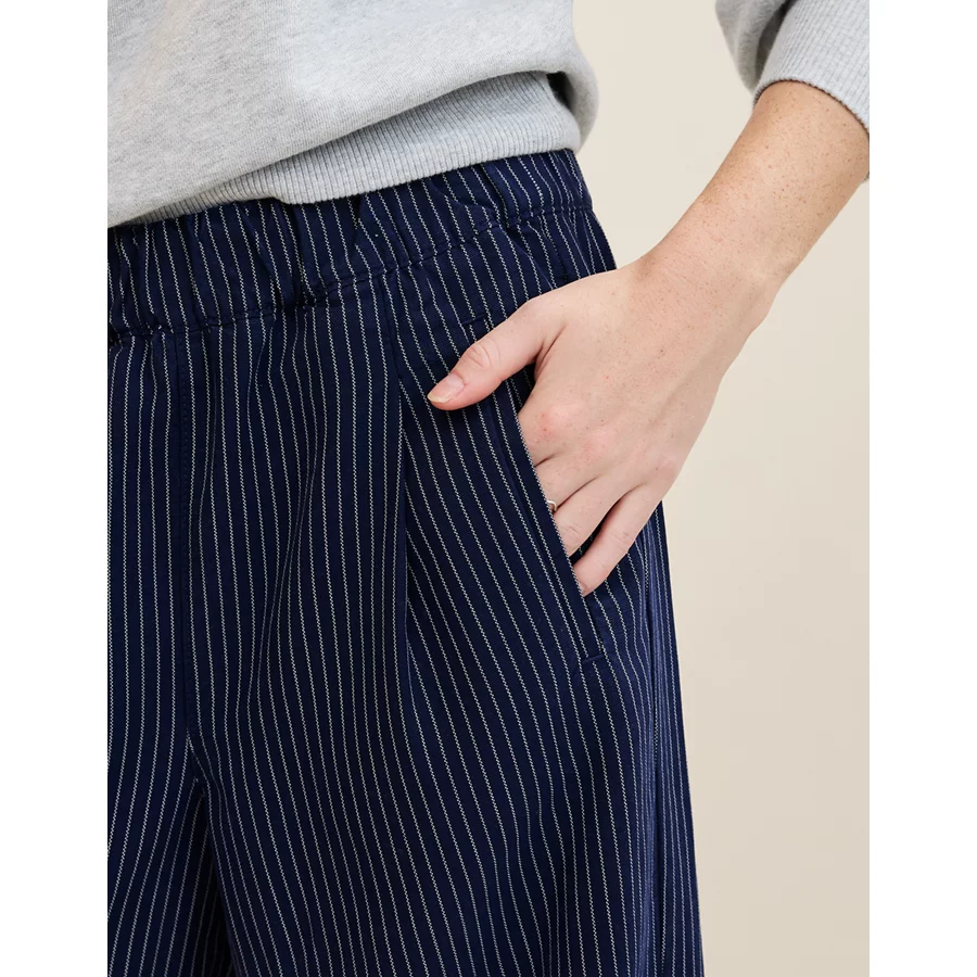 Real Good Everyday yarnRolled necklineRibbed trim on cuffs and hemPointelle deets and split cuffs on the sleevesStripedAccessibility deets: over-the-head access