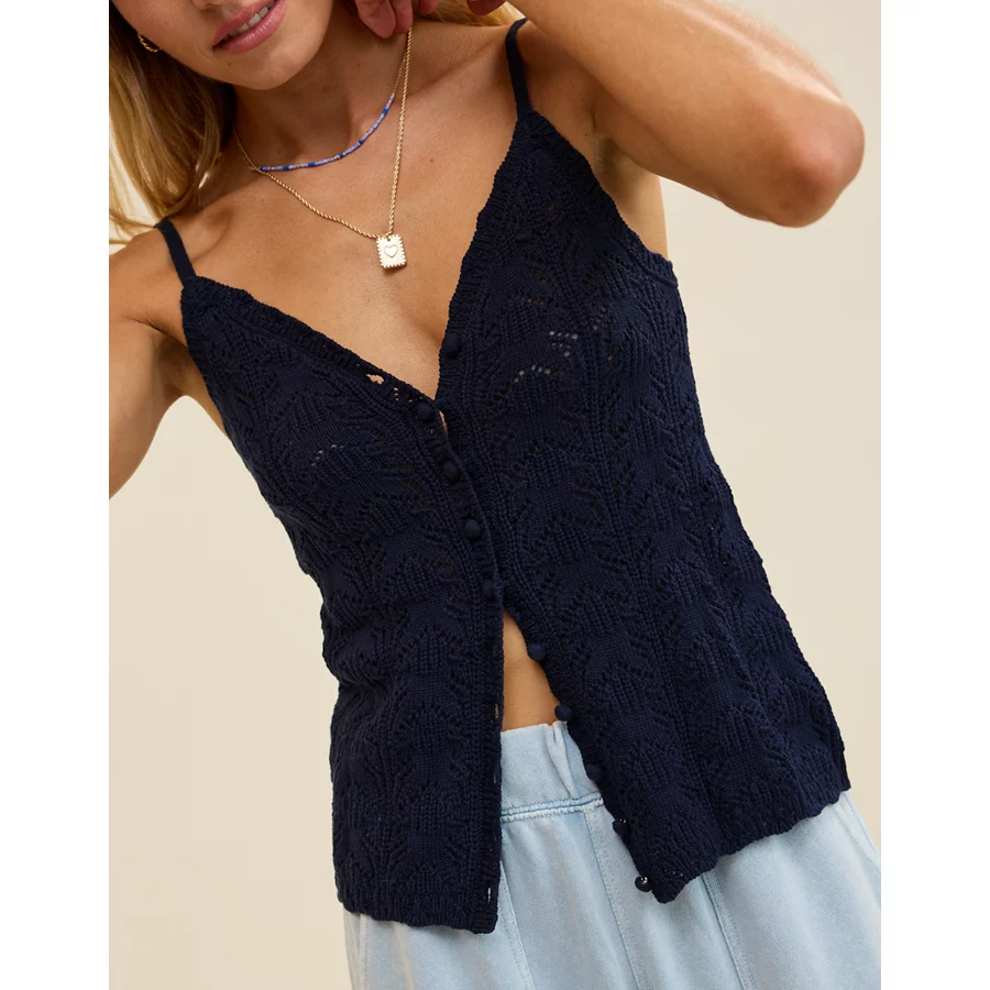Aerie Sweater Button Front Tank Top – Navy