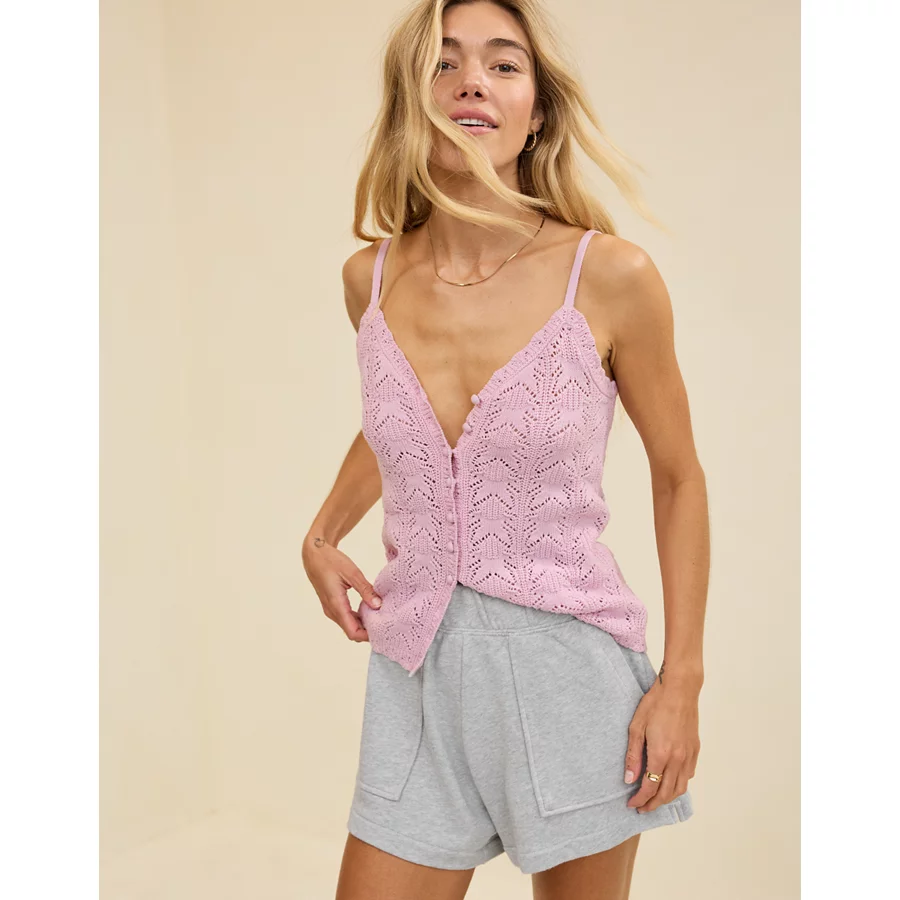 Aerie Sweater Button Front Tank Top – Orchid