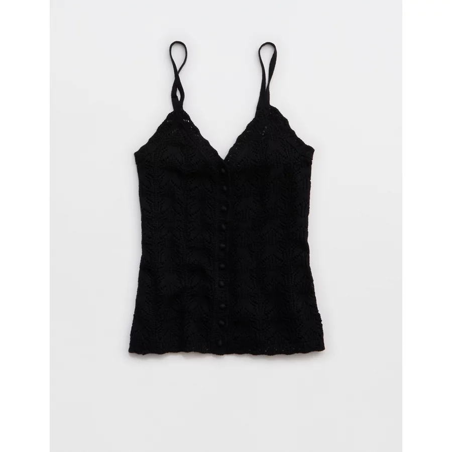 Aerie Sweater Button Front Tank Top – True Black