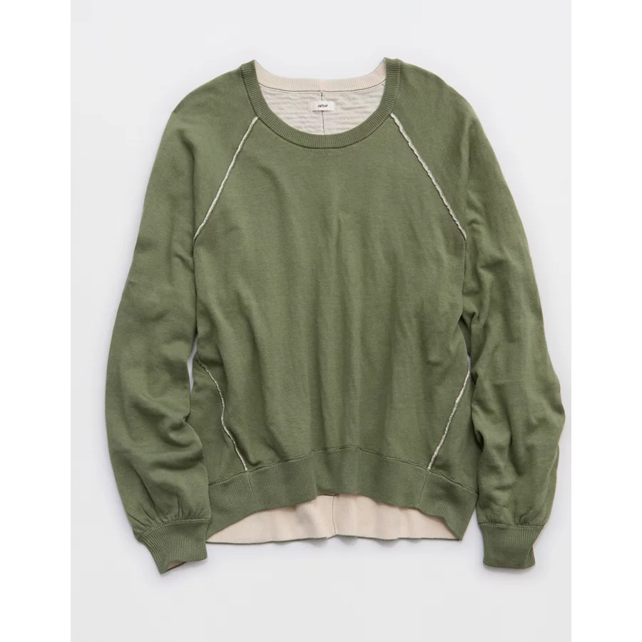 Aerie Sweater Sweatshirt – Olive Fun