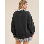 Real Good Everyday yarnRolled necklineRibbed trim on cuffs and hemPointelle deets and split cuffs on the sleevesStripedAccessibility deets: over-the-head access