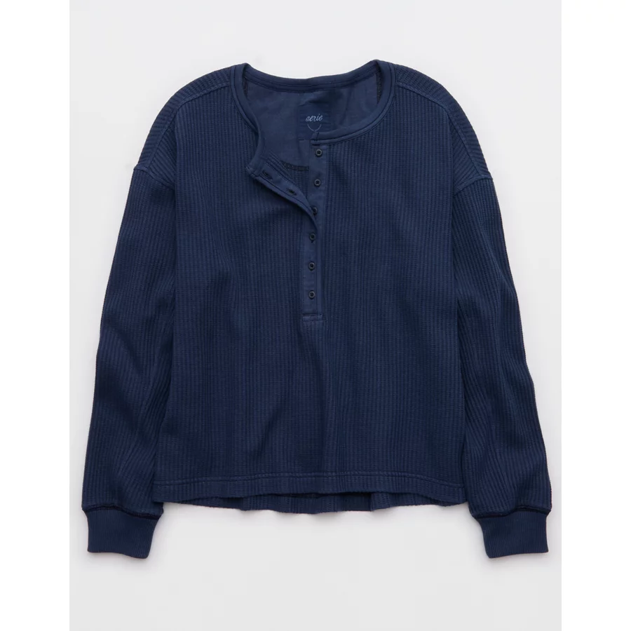 Aerie Waffle Henley Sweatshirt – Navy