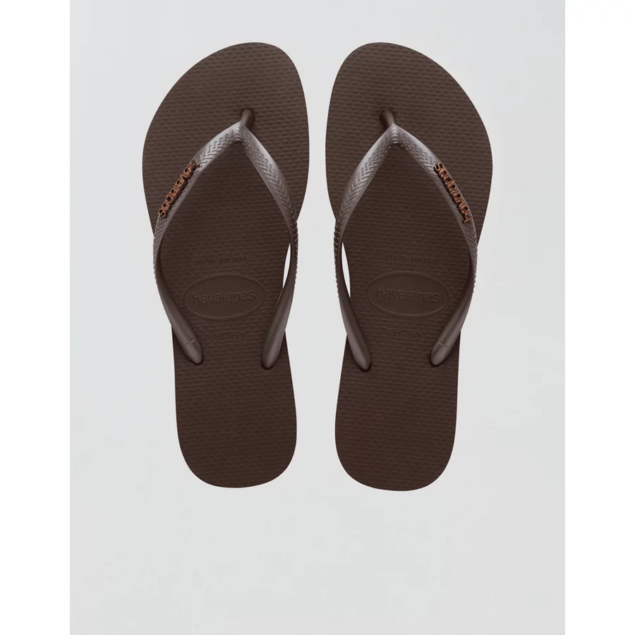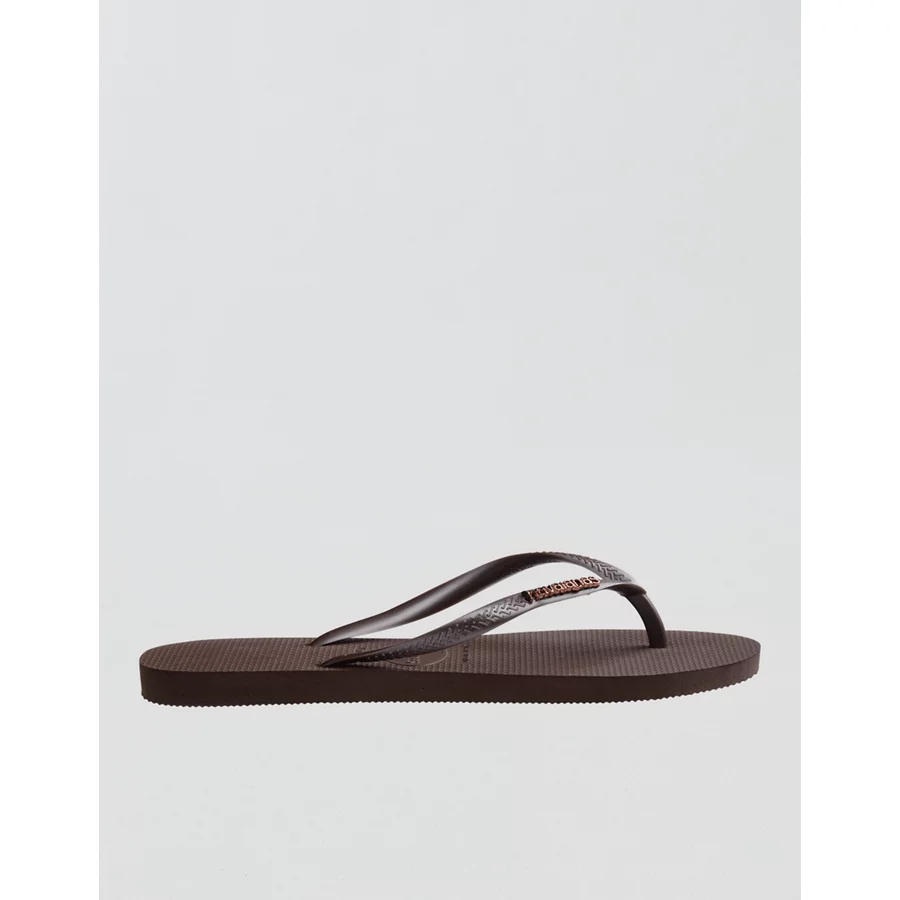 Havaianas Women’s Slim Logo Metallic Flip Flops – Chocolate