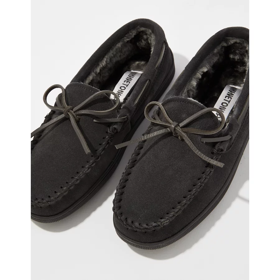 Minnetonka Men’s Pile Lined Hardsole Slipper – Gray