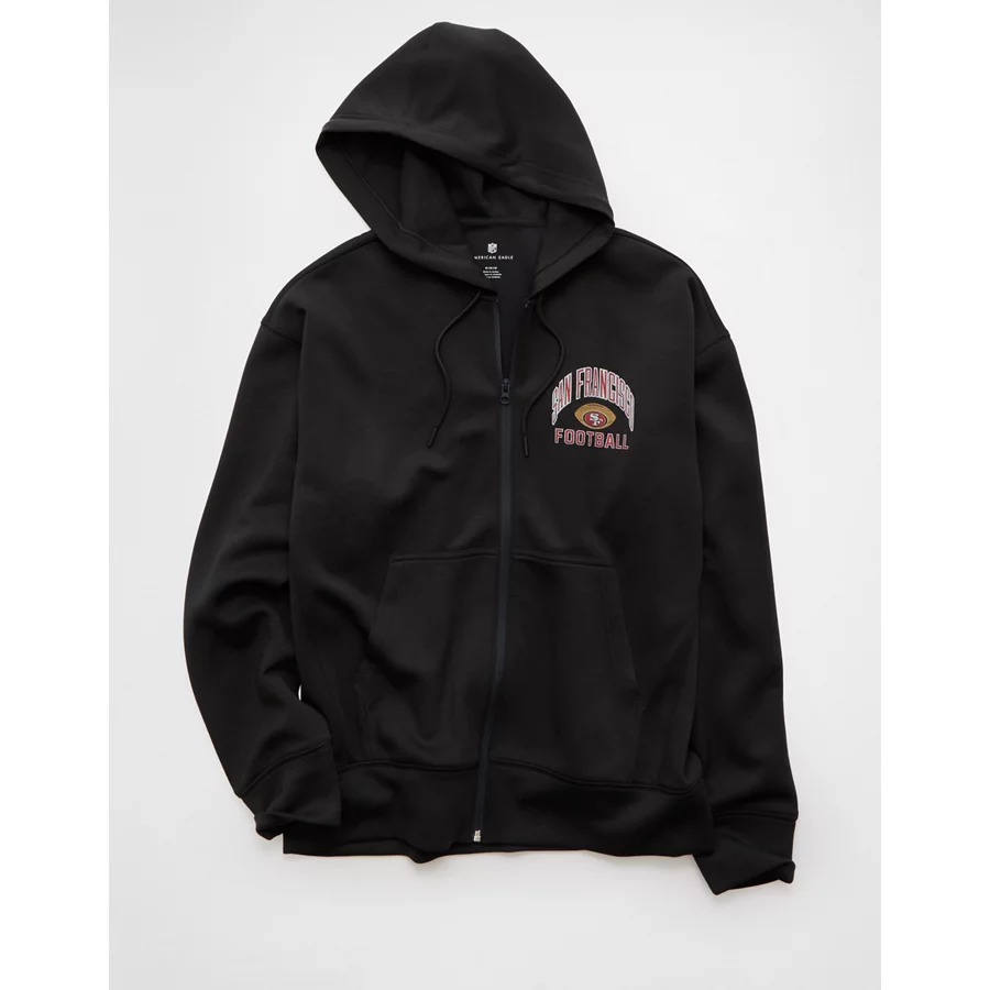 NFL San Francisco 49ers Graphic Zip-Up Hoodie – Washed Black
