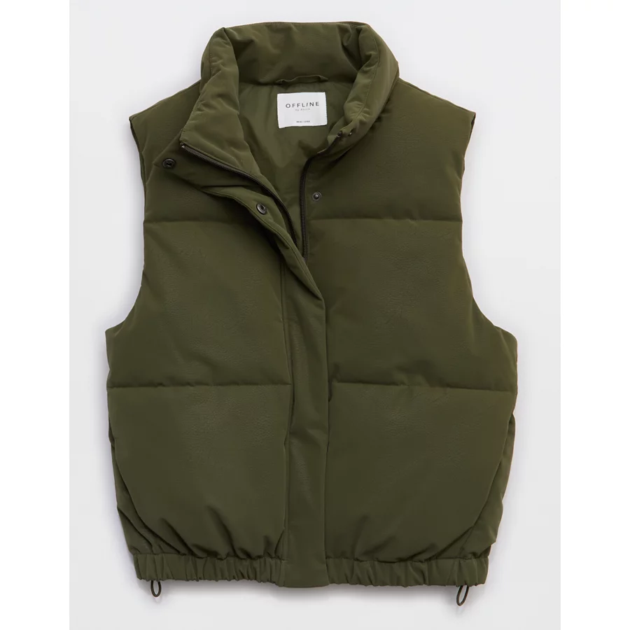 OFFLINE By Aerie Classic Length Puffer Vest – Military Green