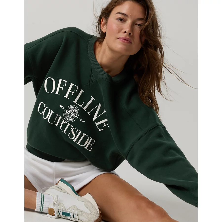 OFFLINE By Aerie Cloud Fleece Classic Crewneck Sweatshirt – Mystical Green