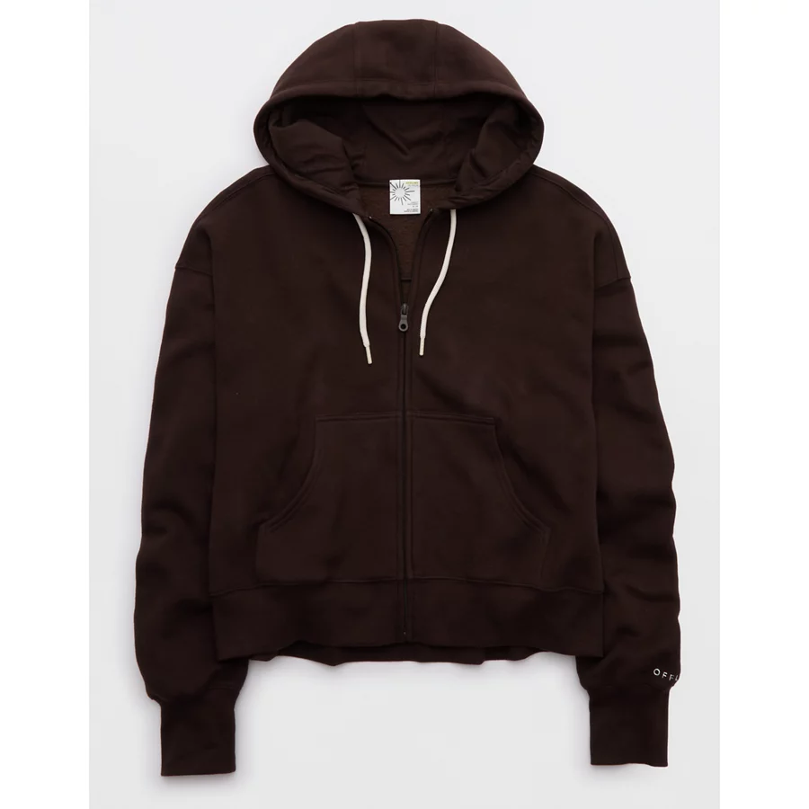 OFFLINE By Aerie Cloud Fleece Classic Full Zip Sweatshirt – Deep Earth