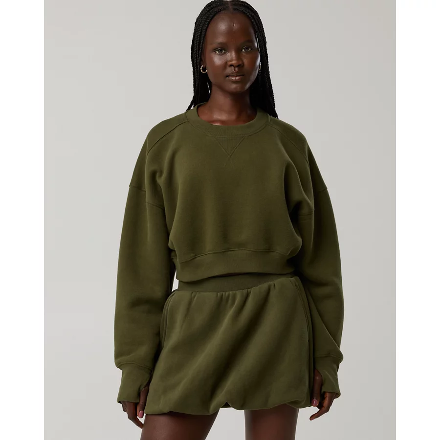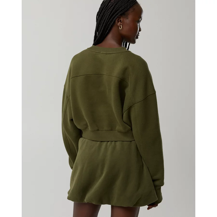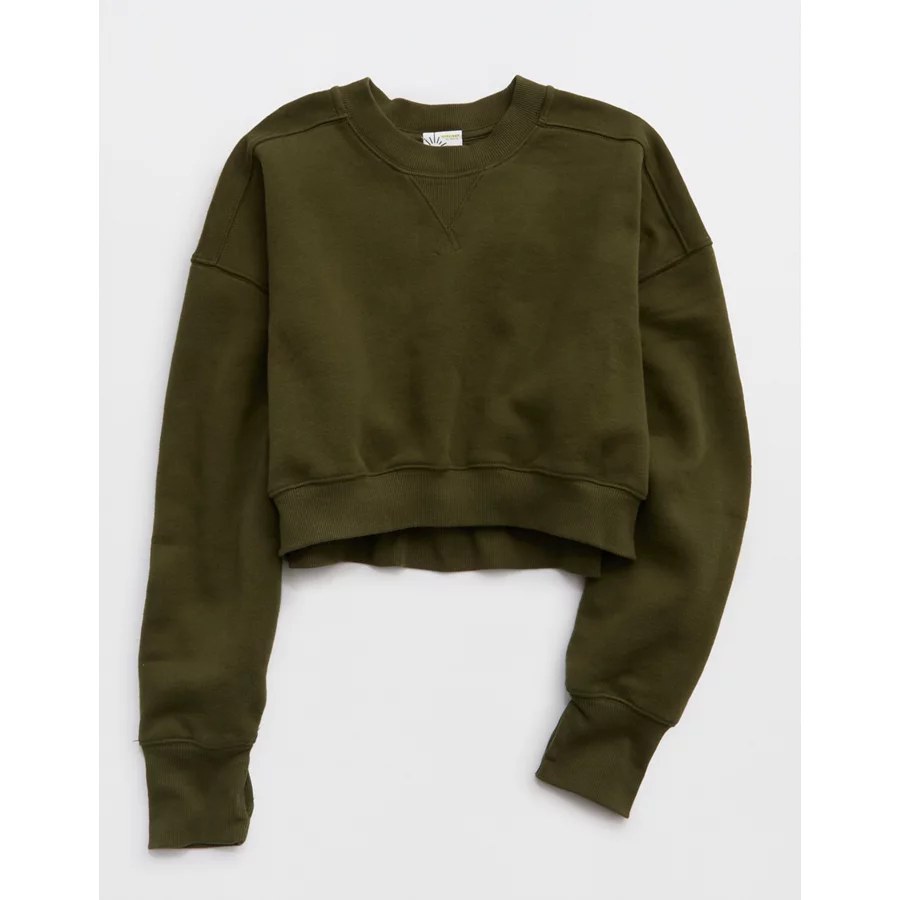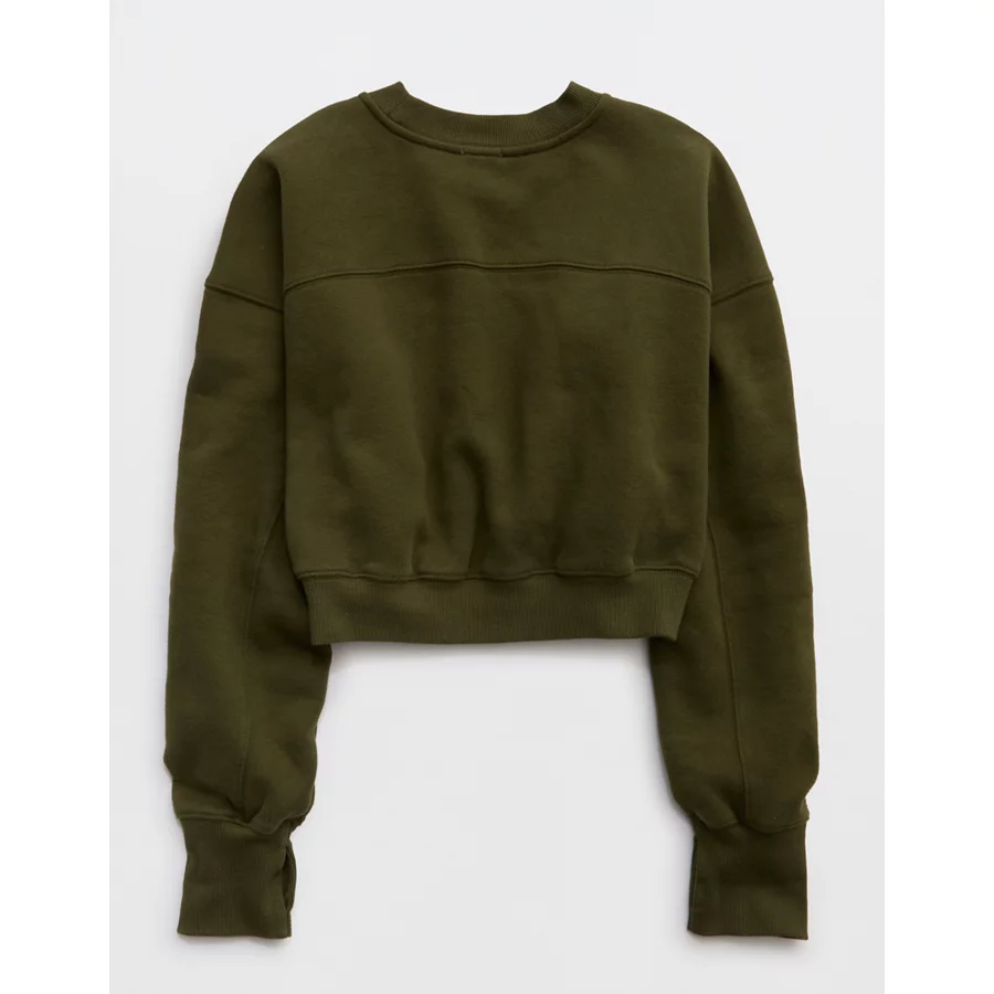 OFFLINE By Aerie Cloud Fleece Cropped Crewneck Sweatshirt – Military Green