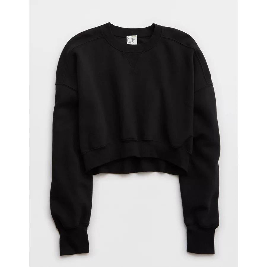 OFFLINE By Aerie Cloud Fleece Cropped Crewneck Sweatshirt – True Black
