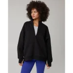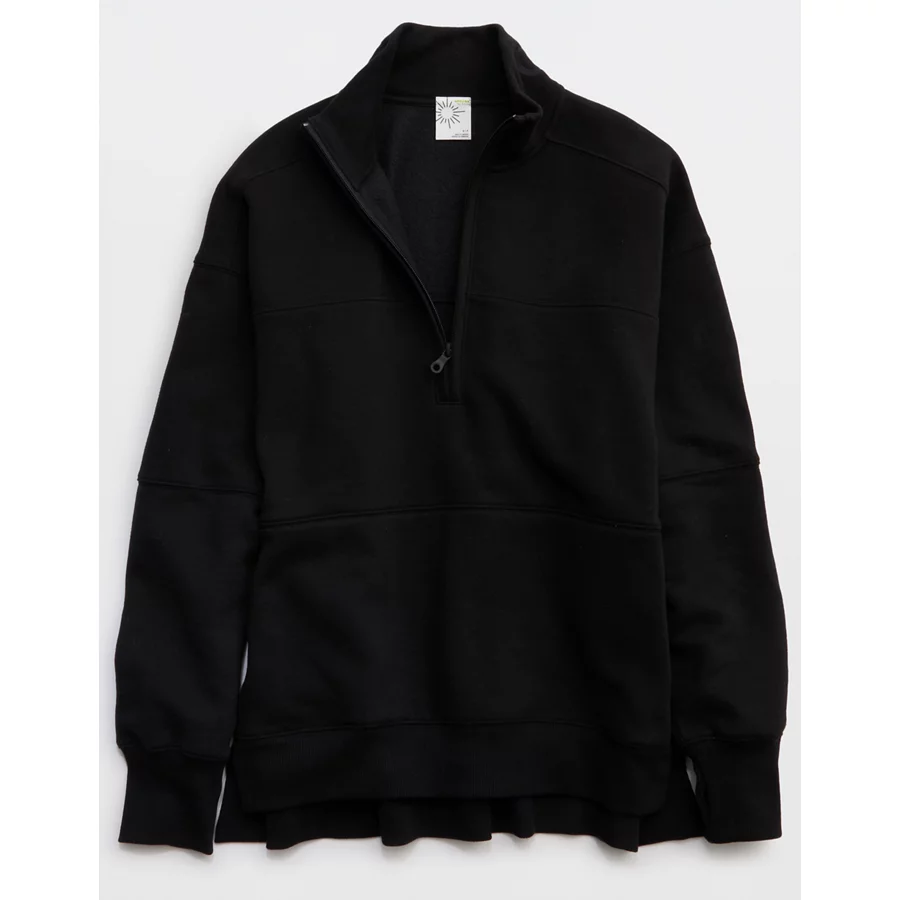 OFFLINE By Aerie Cloud Fleece Quarter Zip Sweatshirt – True Black