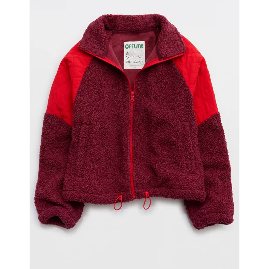 OFFLINE By Aerie Fluff Love Full Zip Jacket – Deep Cherry