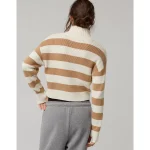 Real Good Everyday yarnRolled necklineRibbed trim on cuffs and hemPointelle deets and split cuffs on the sleevesStripedAccessibility deets: over-the-head access