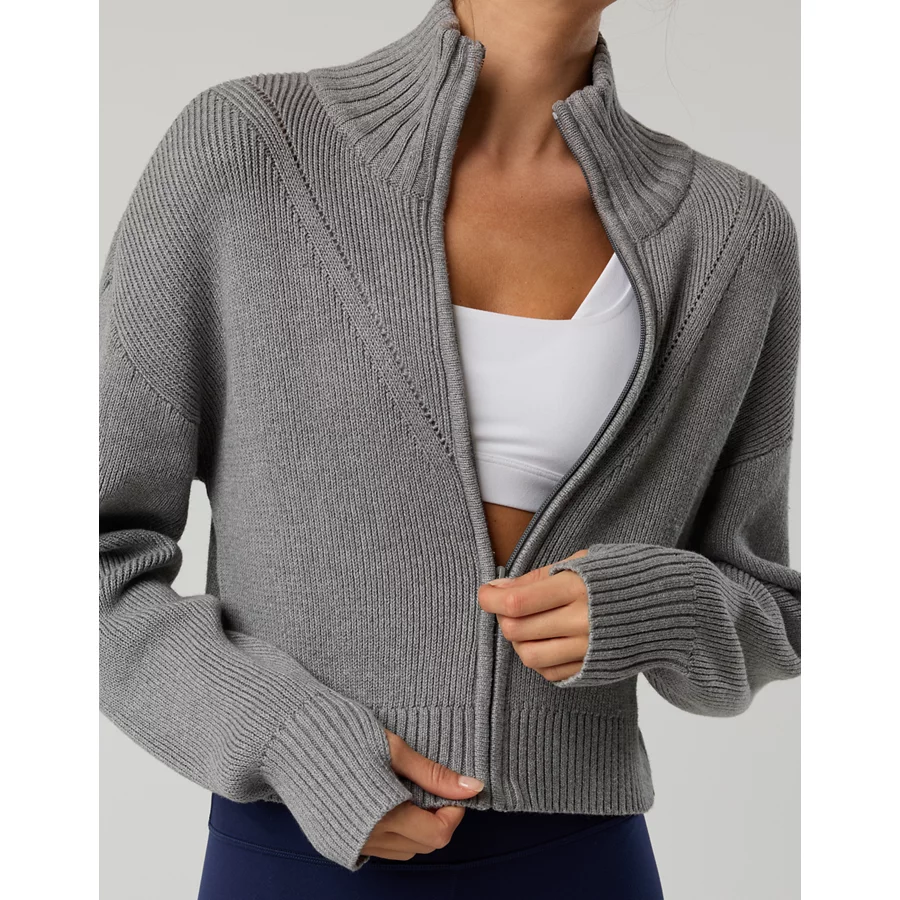 THE LOOK: Super soft & relaxed. Functional full zipper. Thumbholes.