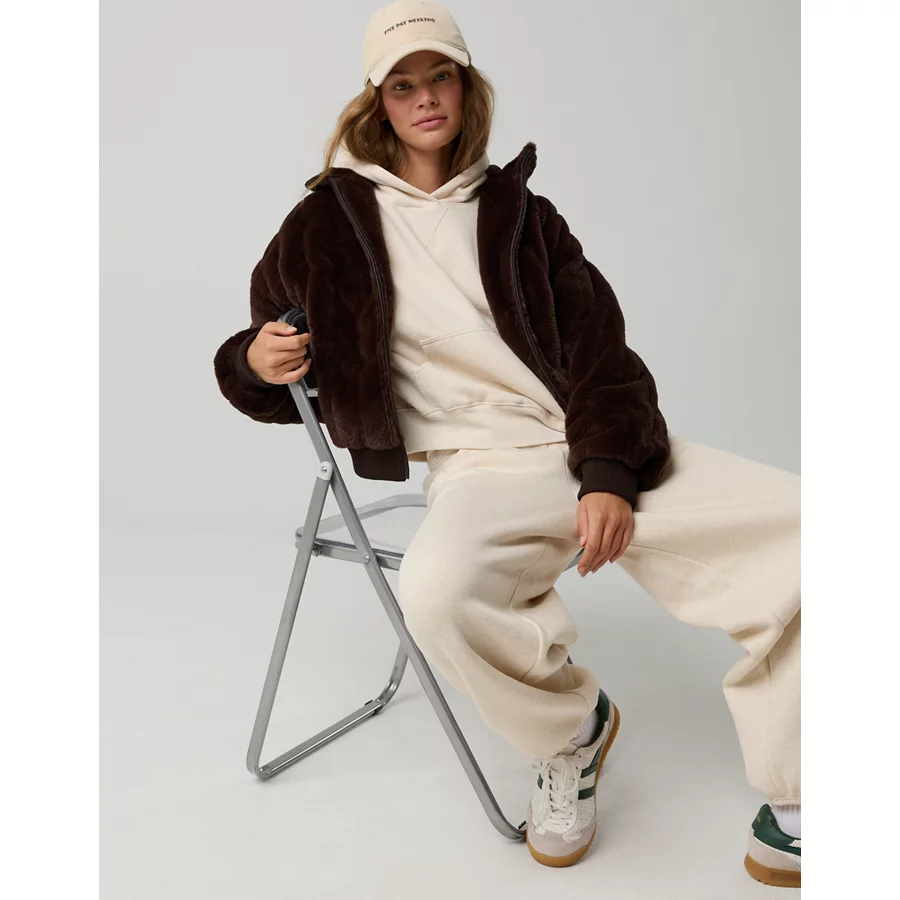 OFFLINE By Aerie Fur Full Zip Jacket – Deep Earth