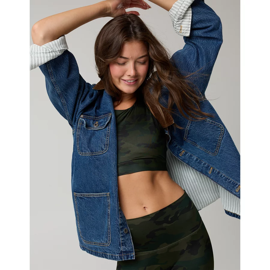 Aerie Anytime Fave Flannel Button Down Shirt – Dark Shadow