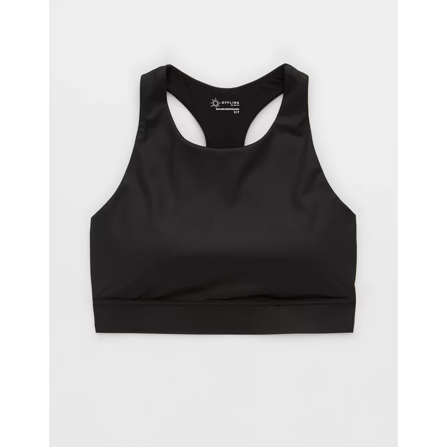 OFFLINE By Aerie Goals Gloss High Neck Sports Bra – True Black