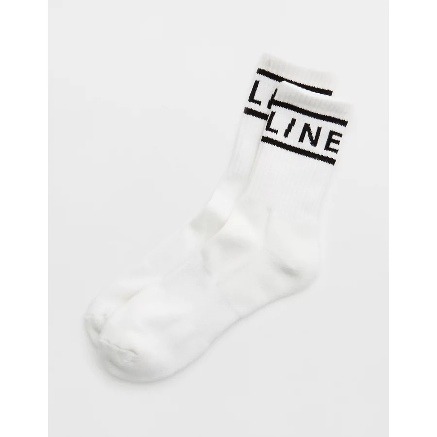 OFFLINE By Aerie Graphic Crew Socks – White