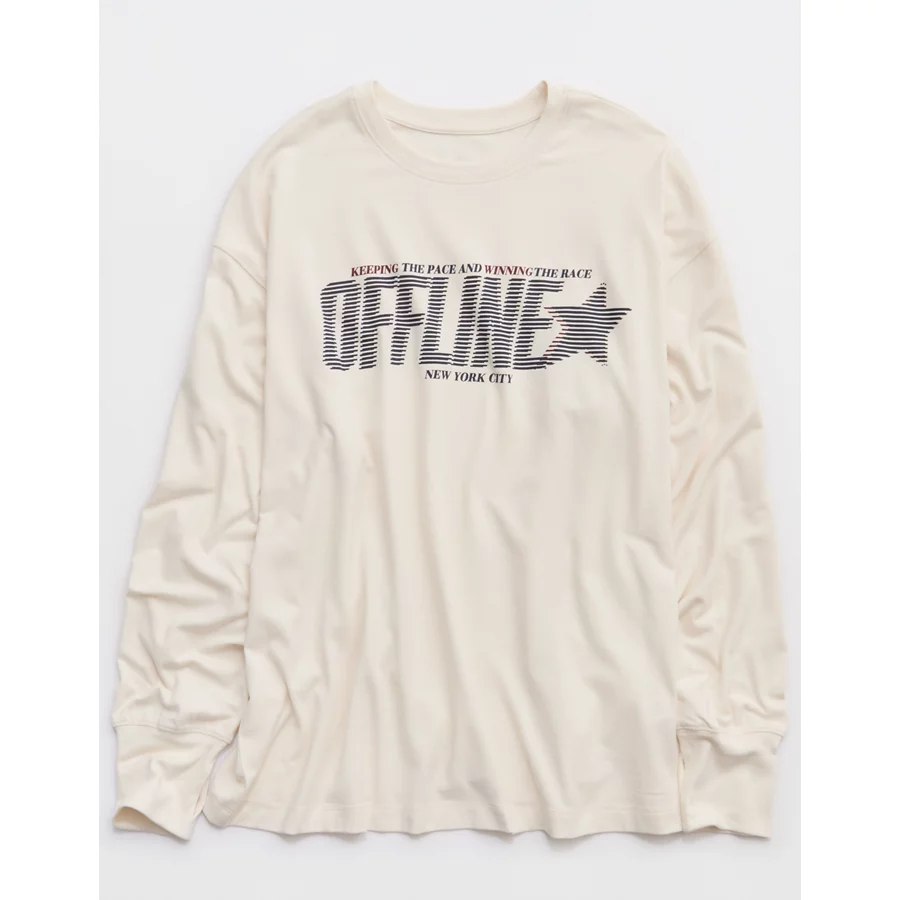 OFFLINE By Aerie Let’s Stretch Long Sleeve Boyfriend T-Shirt – Natural