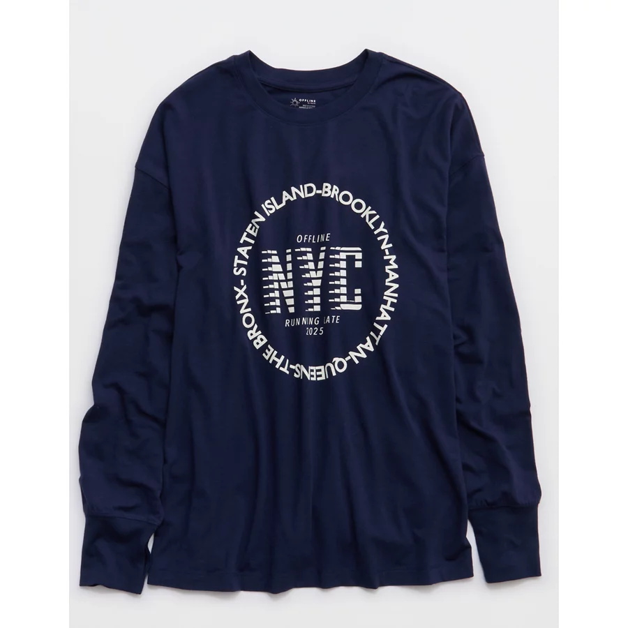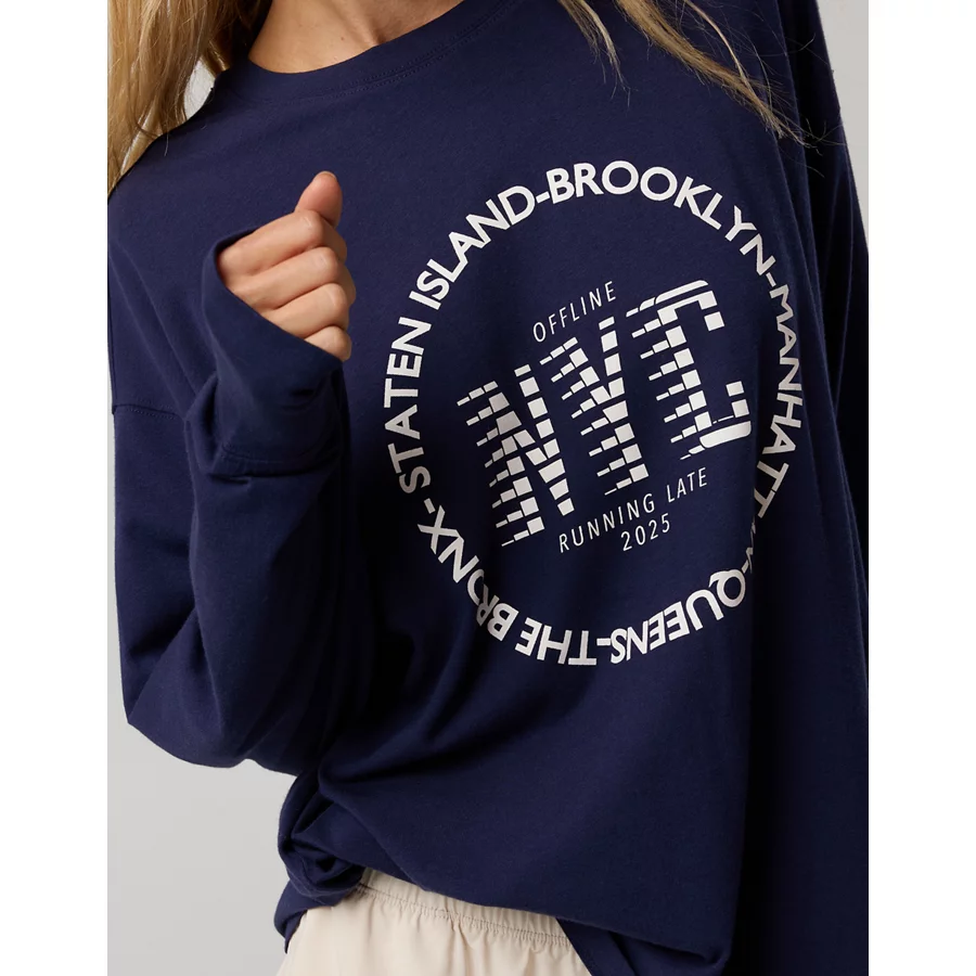 OFFLINE By Aerie Let’s Stretch Long Sleeve Boyfriend T-Shirt – Royal Navy