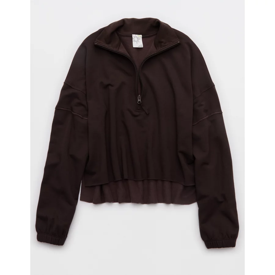 OFFLINE By Aerie OTT Seamed Quarter Zip Sweatshirt – Deep Earth