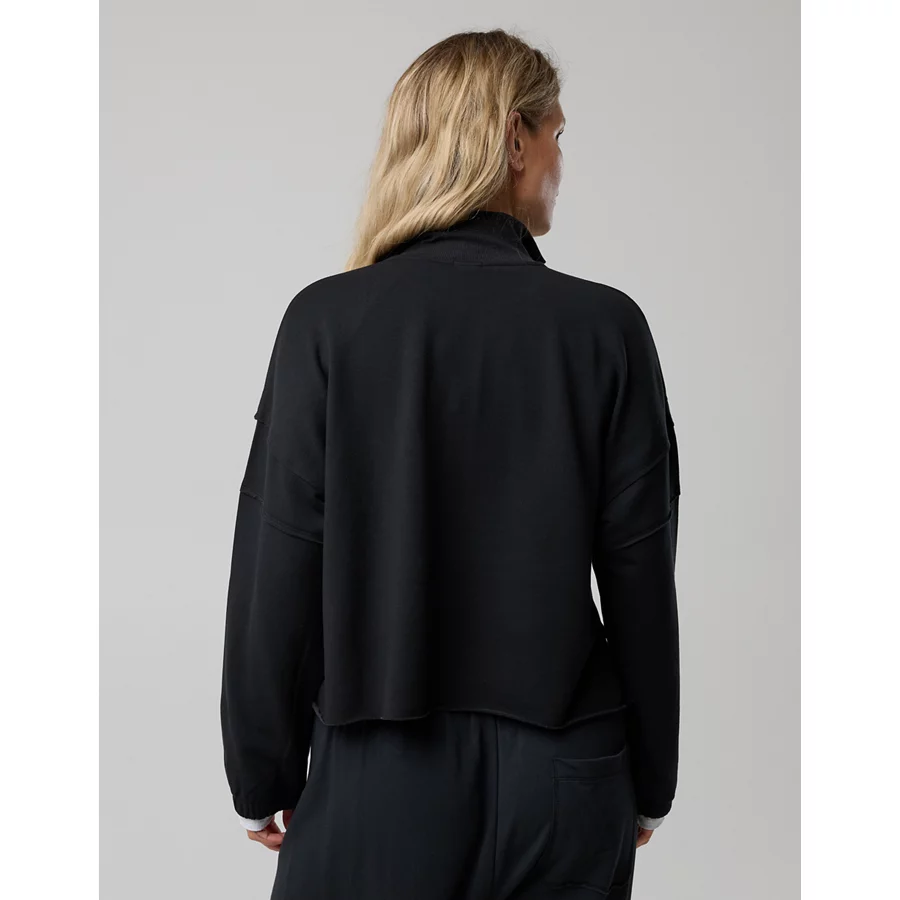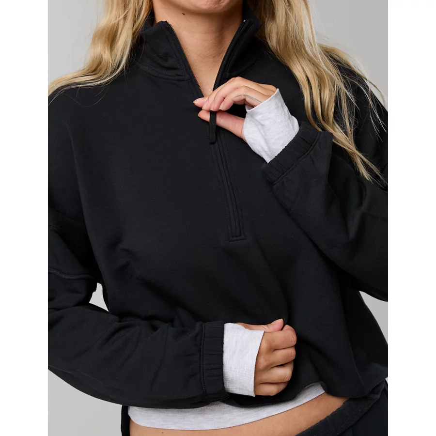 OFFLINE By Aerie OTT Seamed Quarter Zip Sweatshirt – True Black