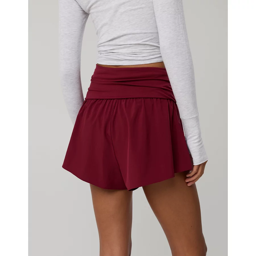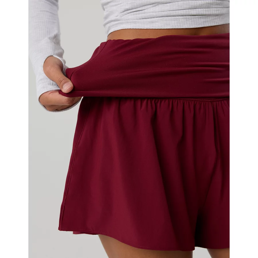 OFFLINE By Aerie Real Me Foldover Flowy Short – Deep Cherry