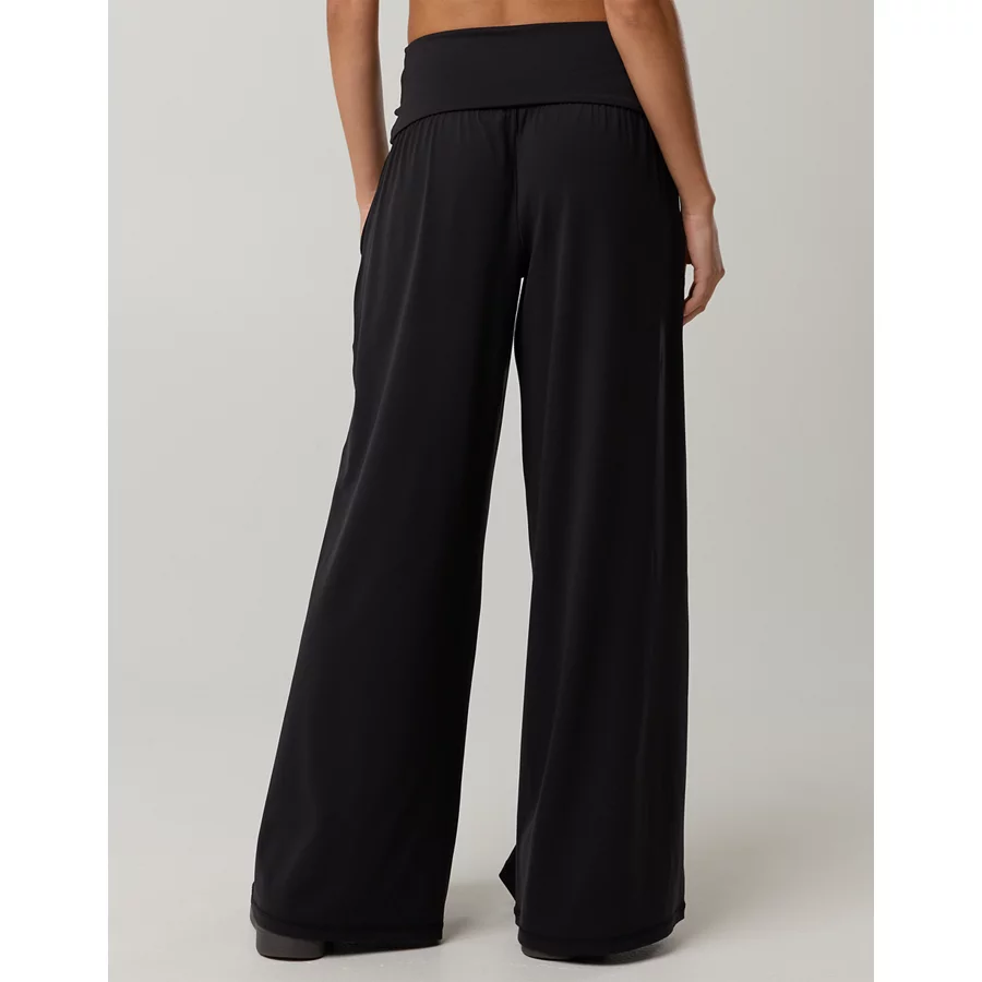 THE LOOK: Smooth with a matte finish. Super wide leg. Foldover waistband. Pockets.