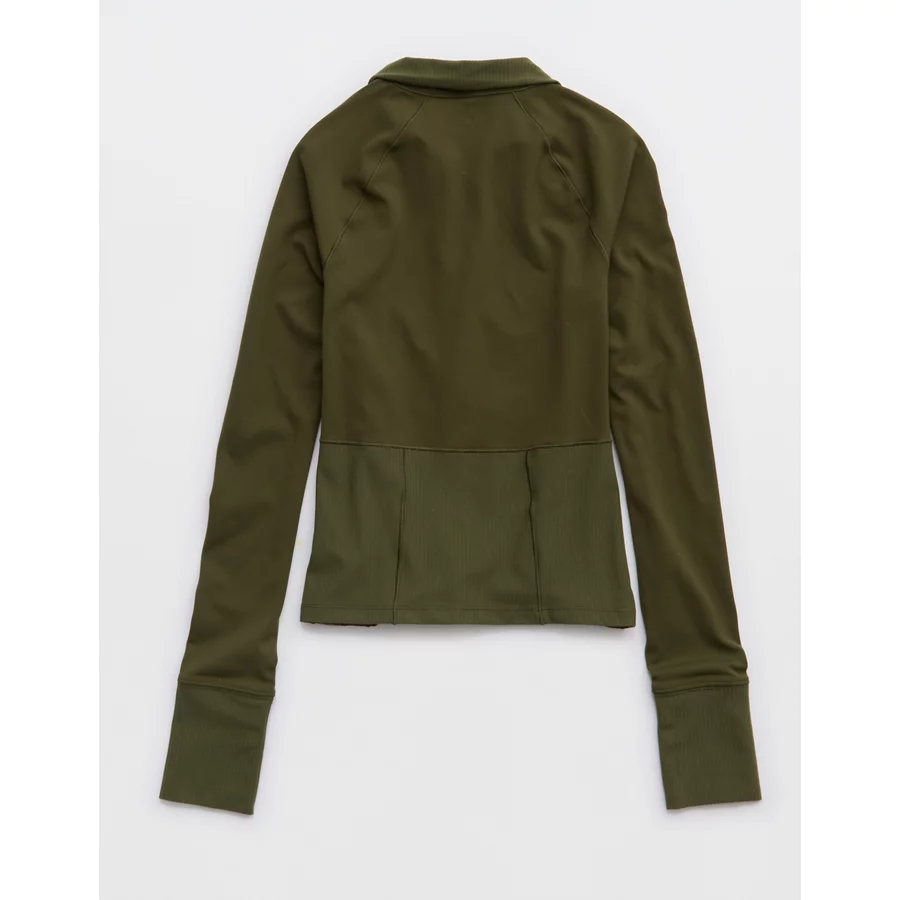 OFFLINE By Aerie Real Me Long Sleeve Mock Neck Full Zip – Military Green