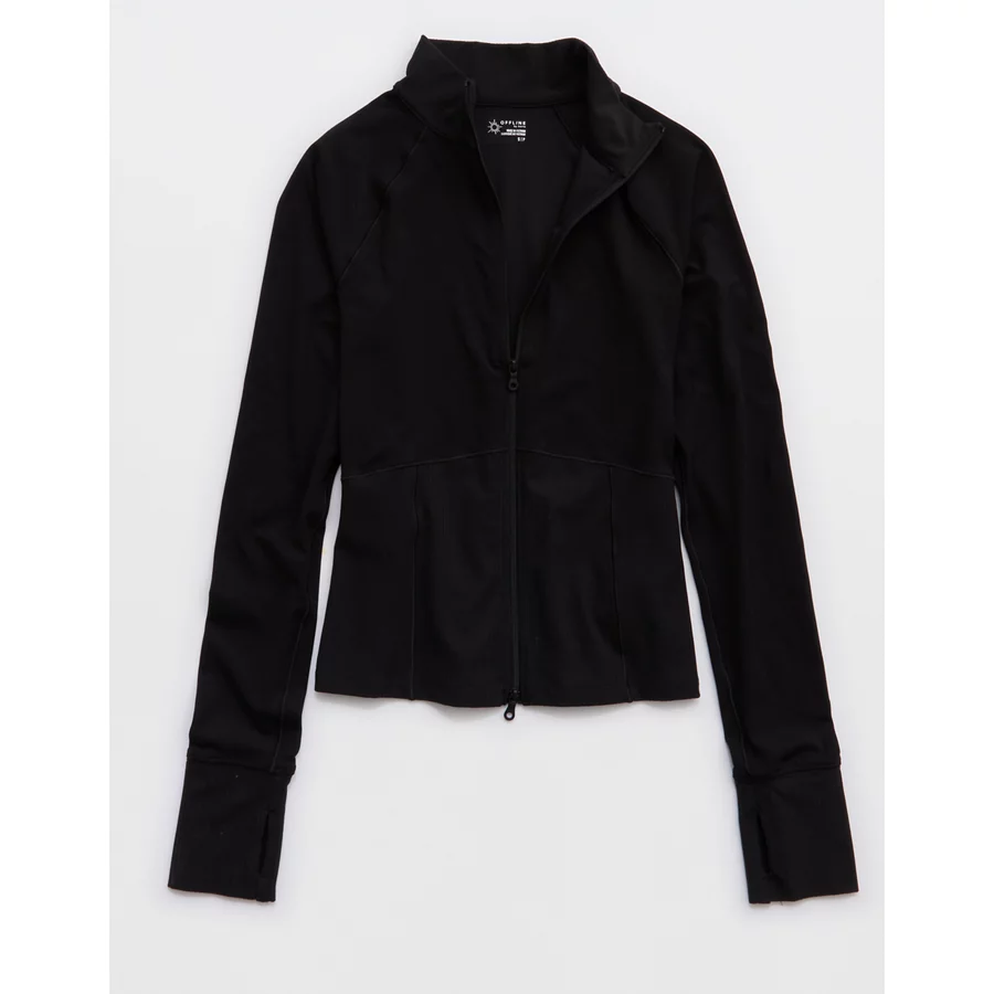 OFFLINE By Aerie Real Me Long Sleeve Mock Neck Full Zip – True Black
