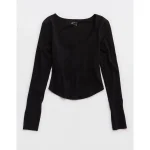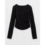 OFFLINE By Aerie Real Me Long Sleeve Scoop T-Shirt – True Black