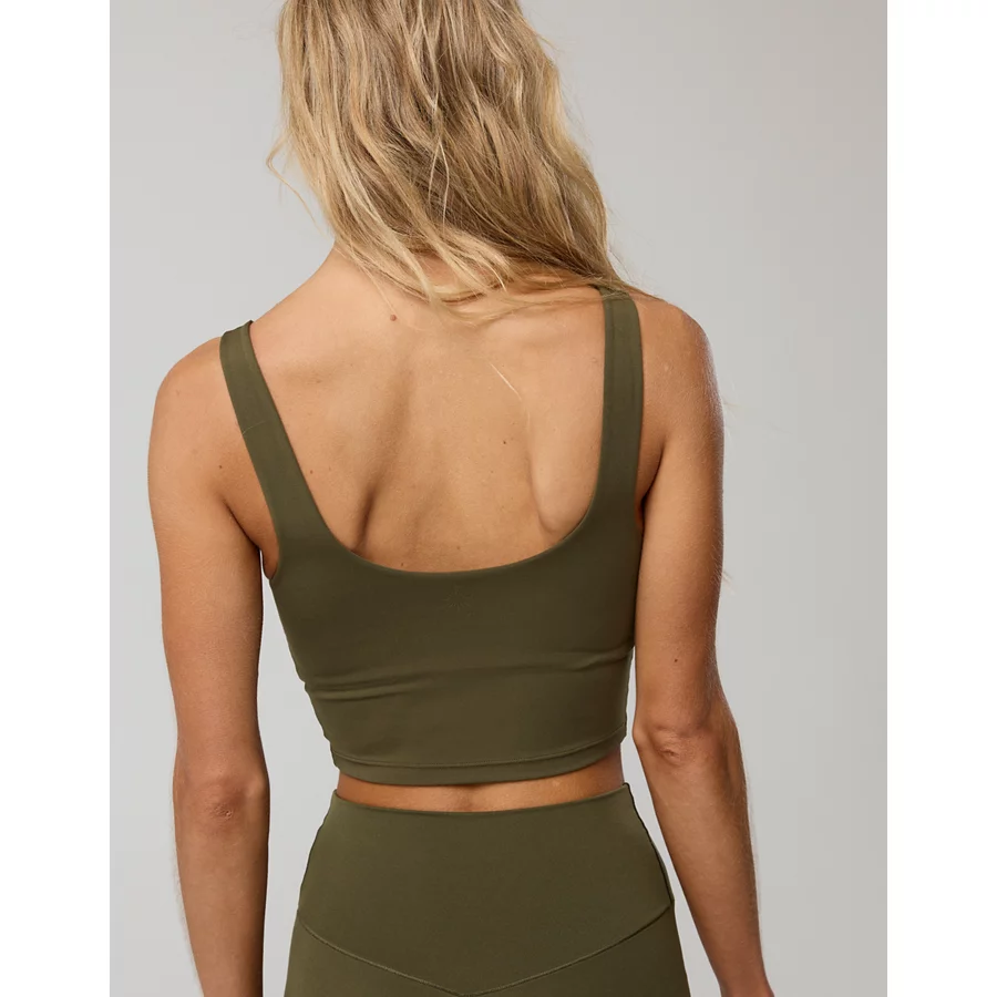 OFFLINE By Aerie Real Me Low Key Longline Sports Bra – Military Green