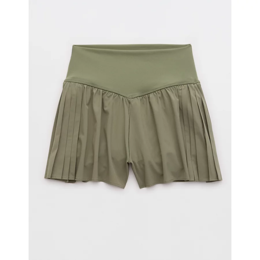 OFFLINE By Aerie Real Me Pleated Flowy Short – Olive Fun