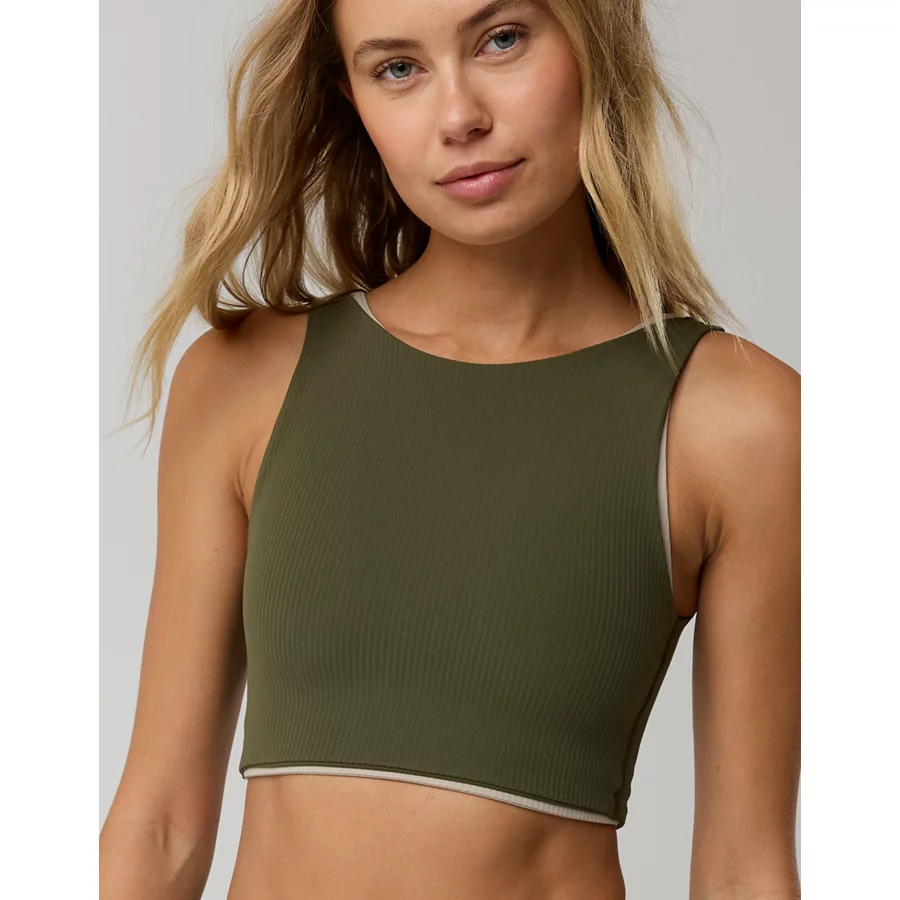 OFFLINE By Aerie Real Me XTRA Rib Switch Up High Neck Sports Bra – Military Green
