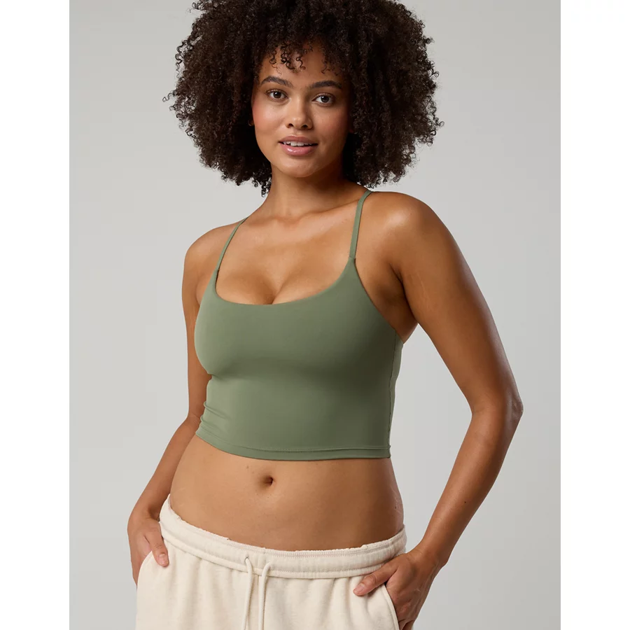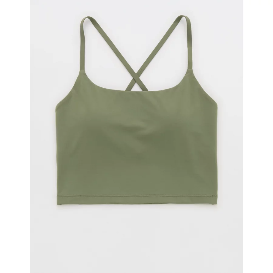 OFFLINE By Aerie Real Me Xtra Strappy Longline Sports Bra – Olive Fun