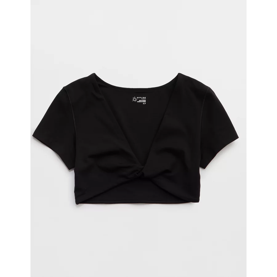OFFLINE By Aerie Real Me Xtra Twist Front Bra Top – True Black