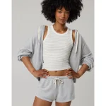 OFFLINE By Aerie Thumbs Up Heavyweight Cropped Tank Top – Light Heather Gray