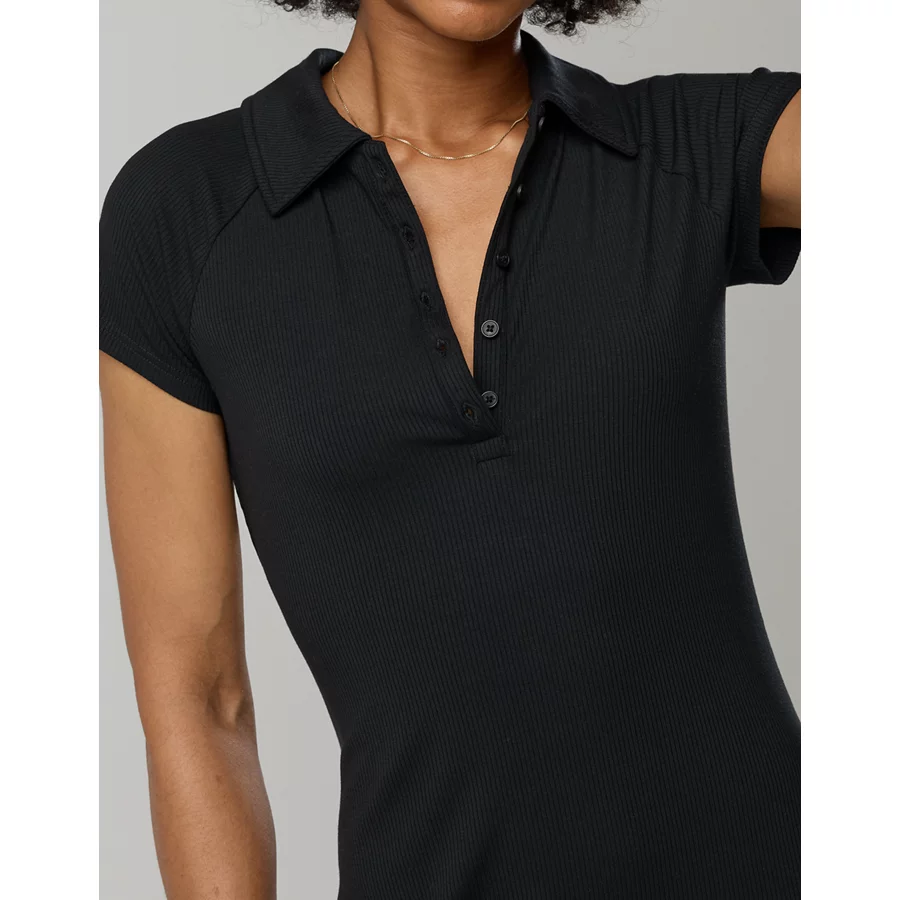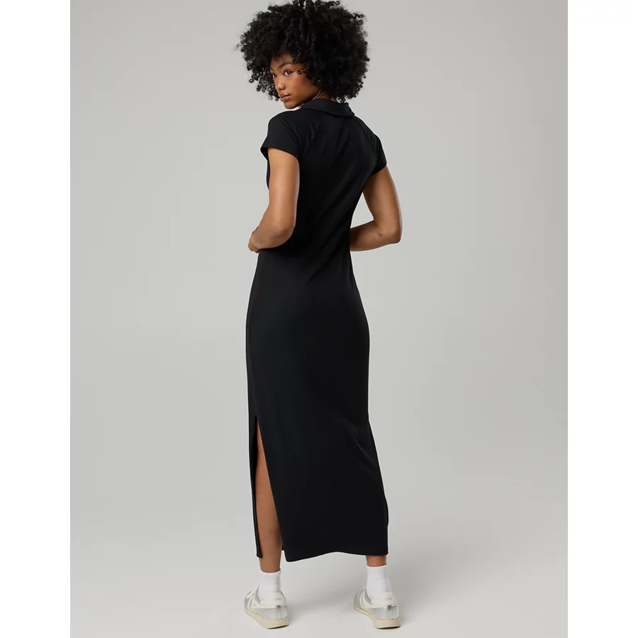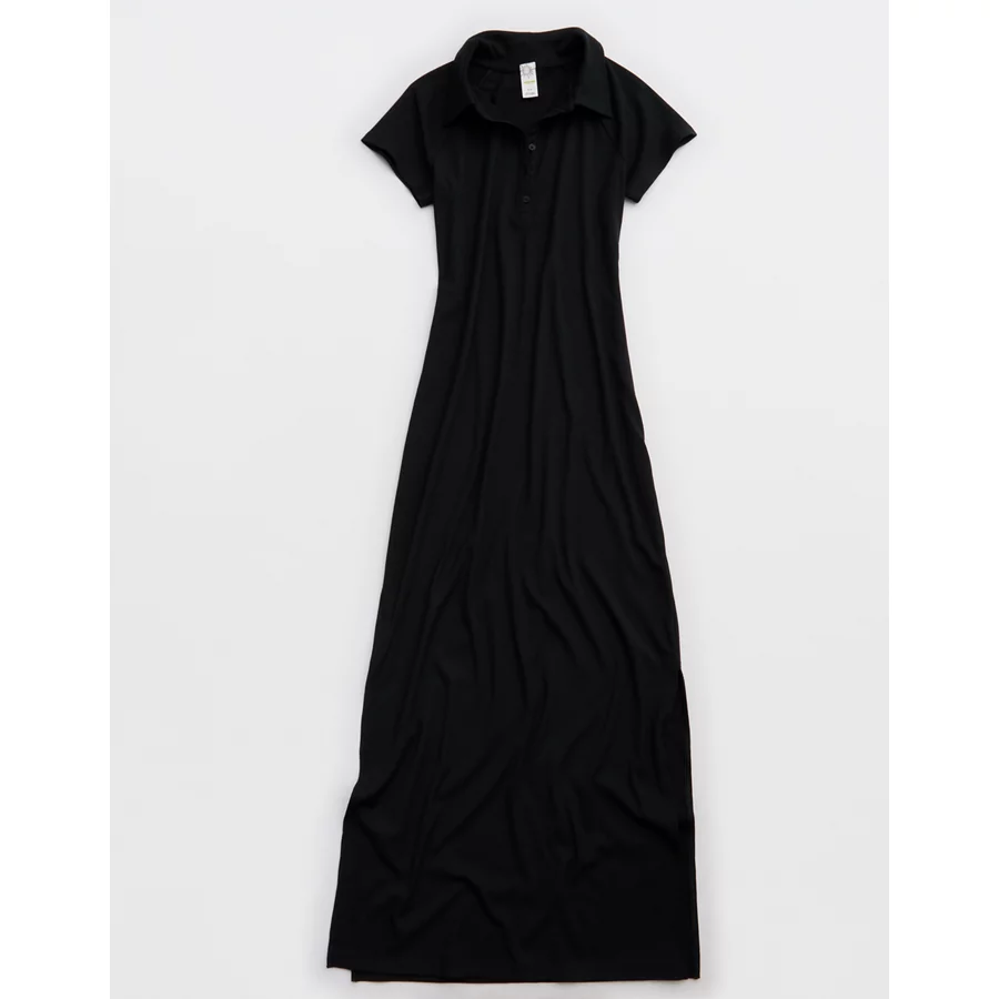 OFFLINE By Aerie Thumbs Up Heavyweight Polo Maxi Dress – True Black