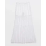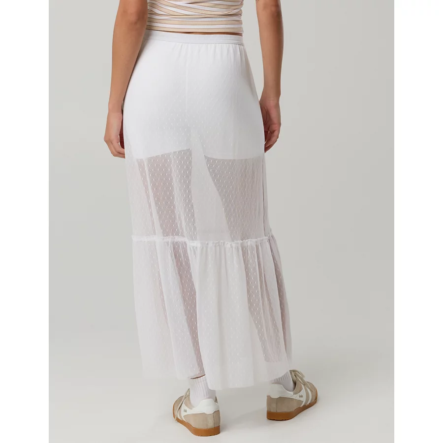 OFFLINE By Aerie Tiered Dot Mesh Maxi Skirt – White