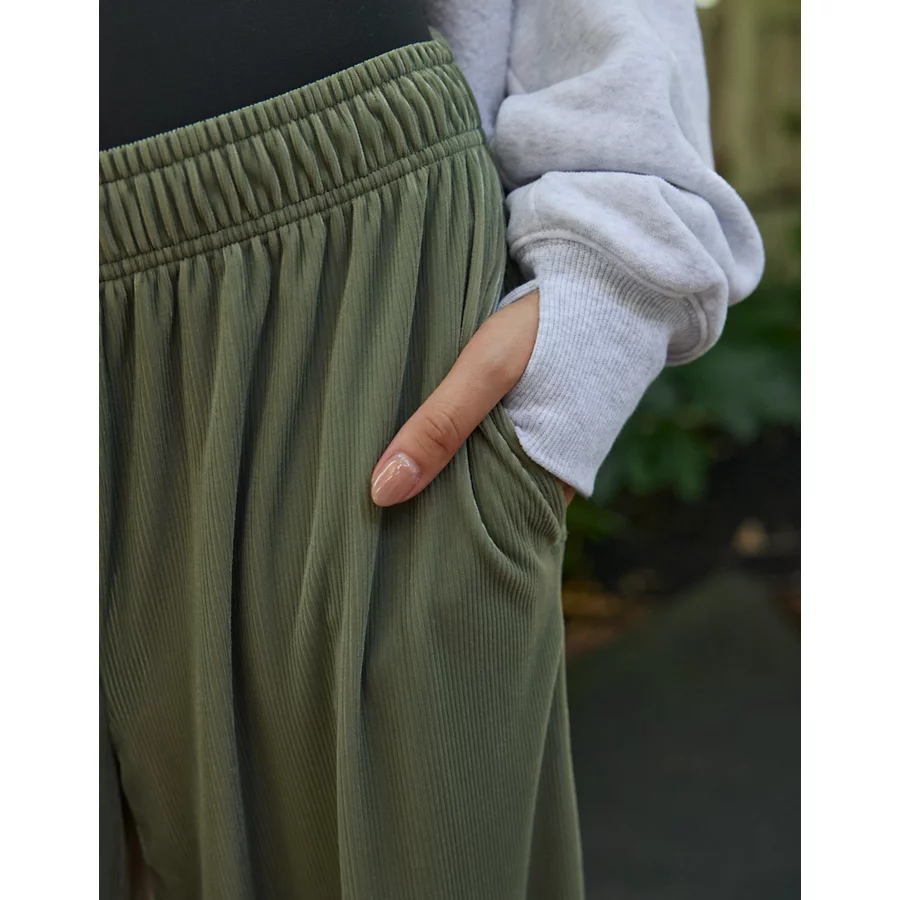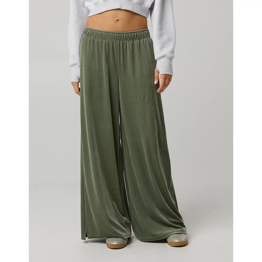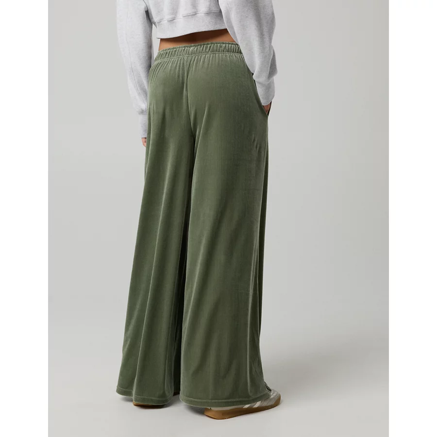 OFFLINE By Aerie Velour Rib Super Wide Leg Pant – Olive Fun