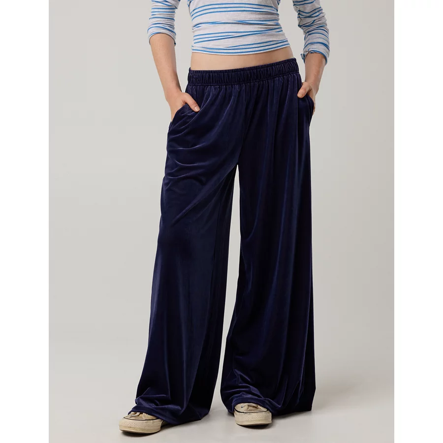 OFFLINE By Aerie Velour Rib Super Wide Leg Pant – Royal Navy