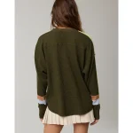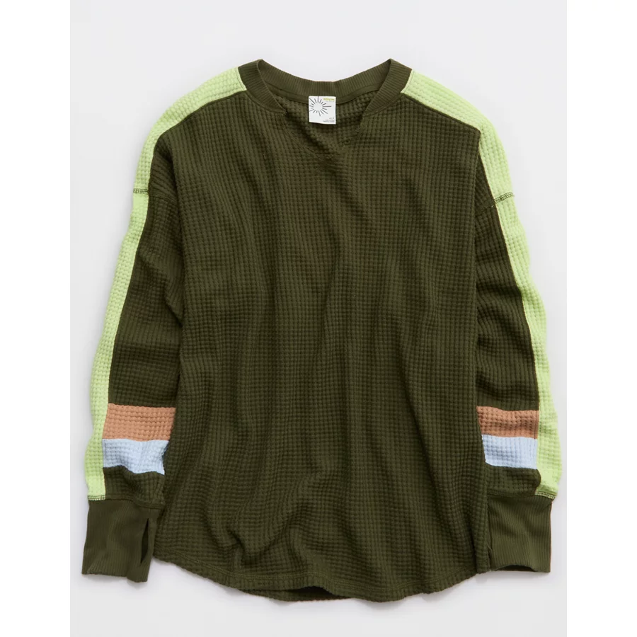OFFLINE By Aerie Wow! Waffle Notch Neck Long Sleeve T-Shirt – Military Green
