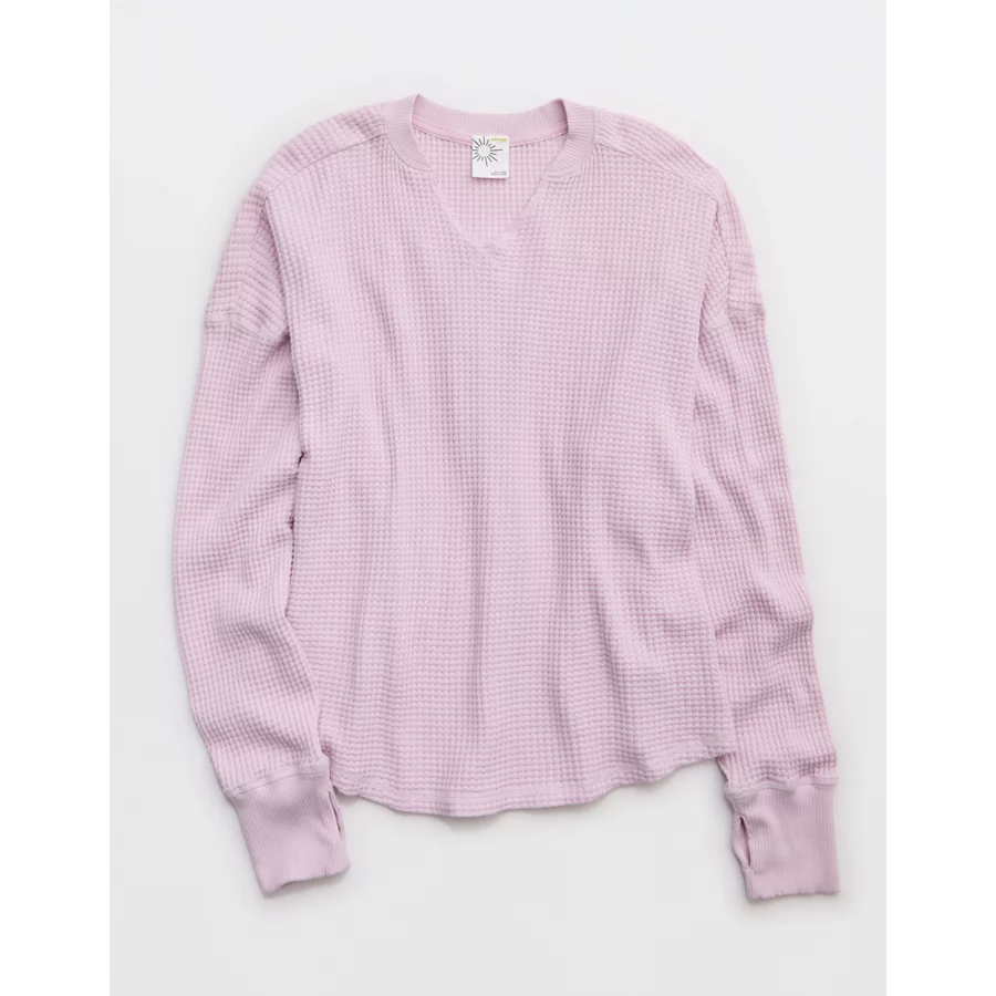 OFFLINE By Aerie Wow! Waffle Notch Neck Long Sleeve T-Shirt – Orchid