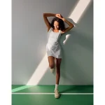 Ultra-soft Real Good Buzzed Terry fabricNEW! UPF 50 sun protectionStrappy back deets! 85% Recycled Nylon, 15% ElastaneUse a mild detergent