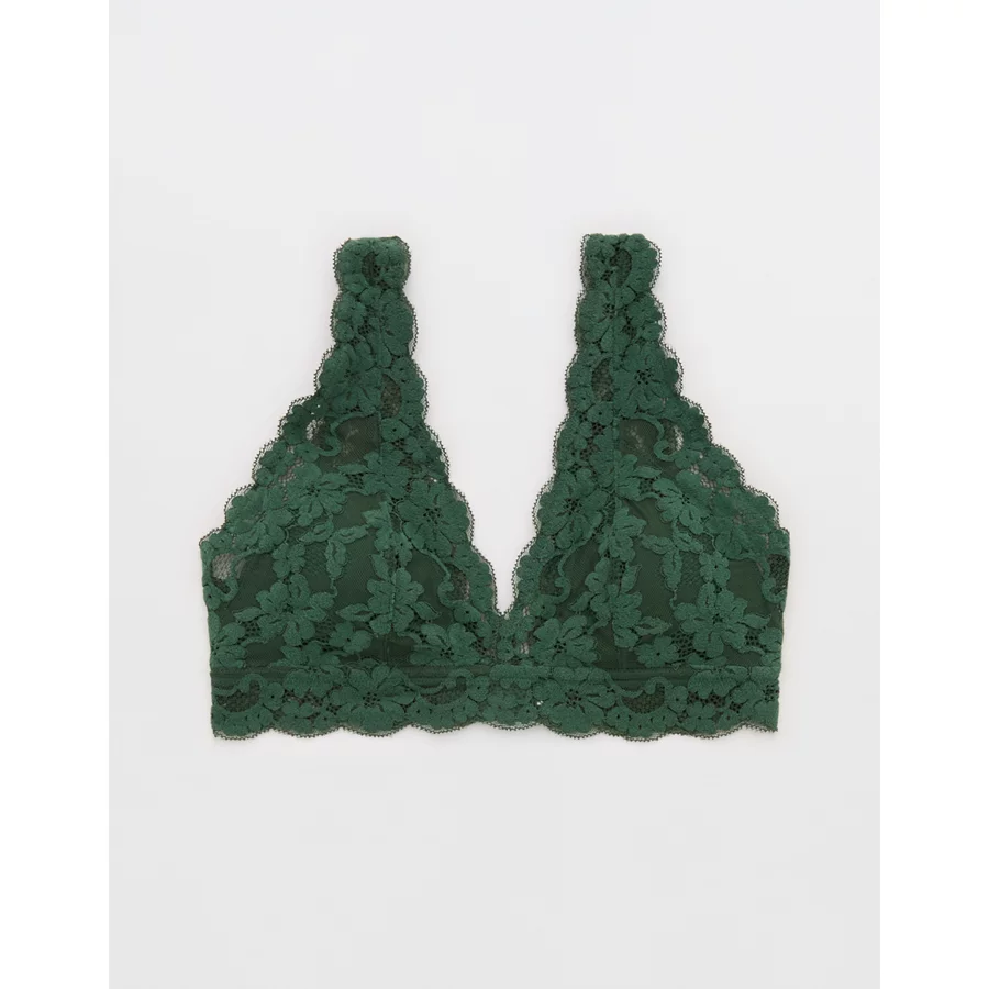 Show Off Chenille Lace Padded Plunge Bralette – Rugged Green