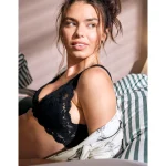 Show Off Chenille Lace Padded Plunge Bralette – True Black